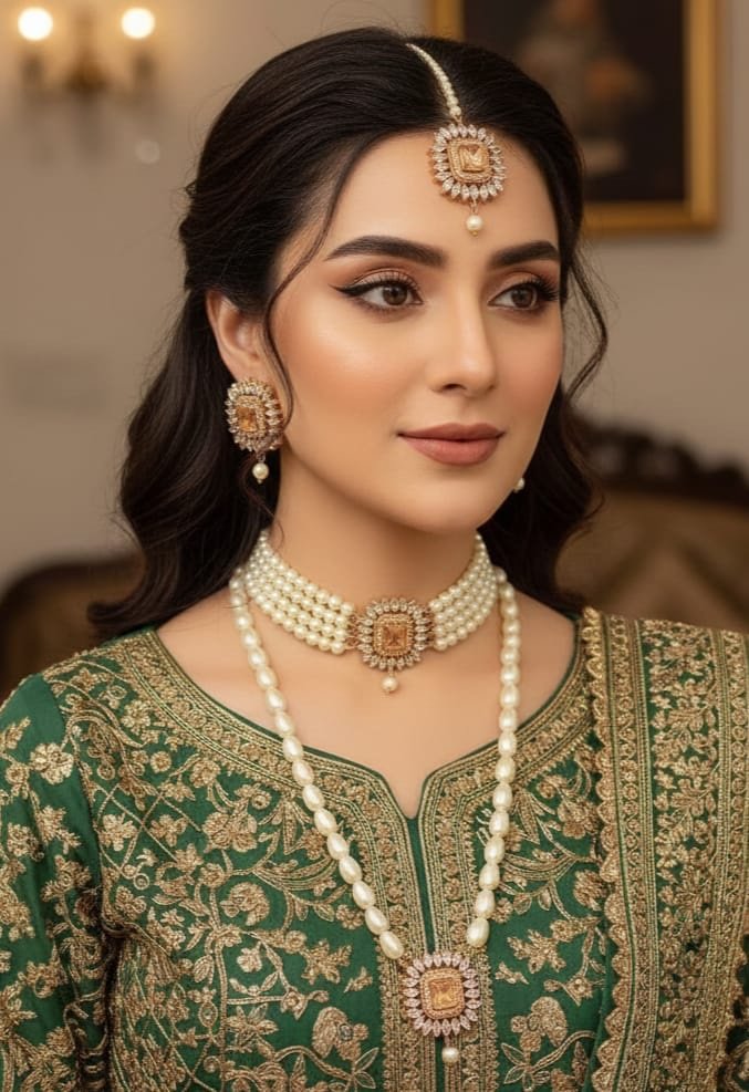 Choker with mala earings teeka